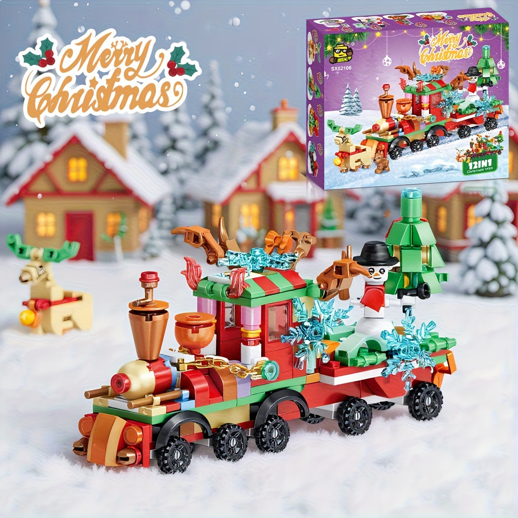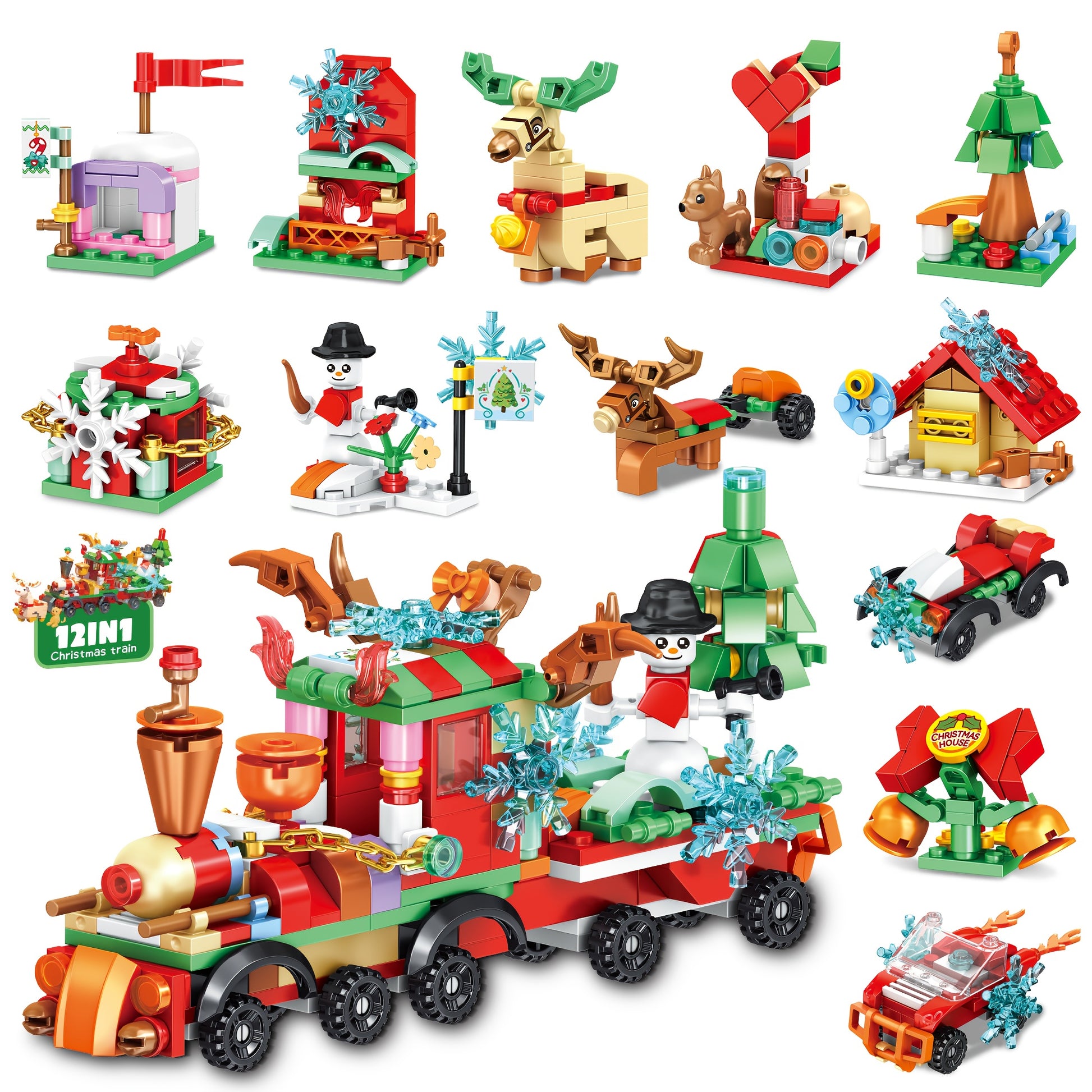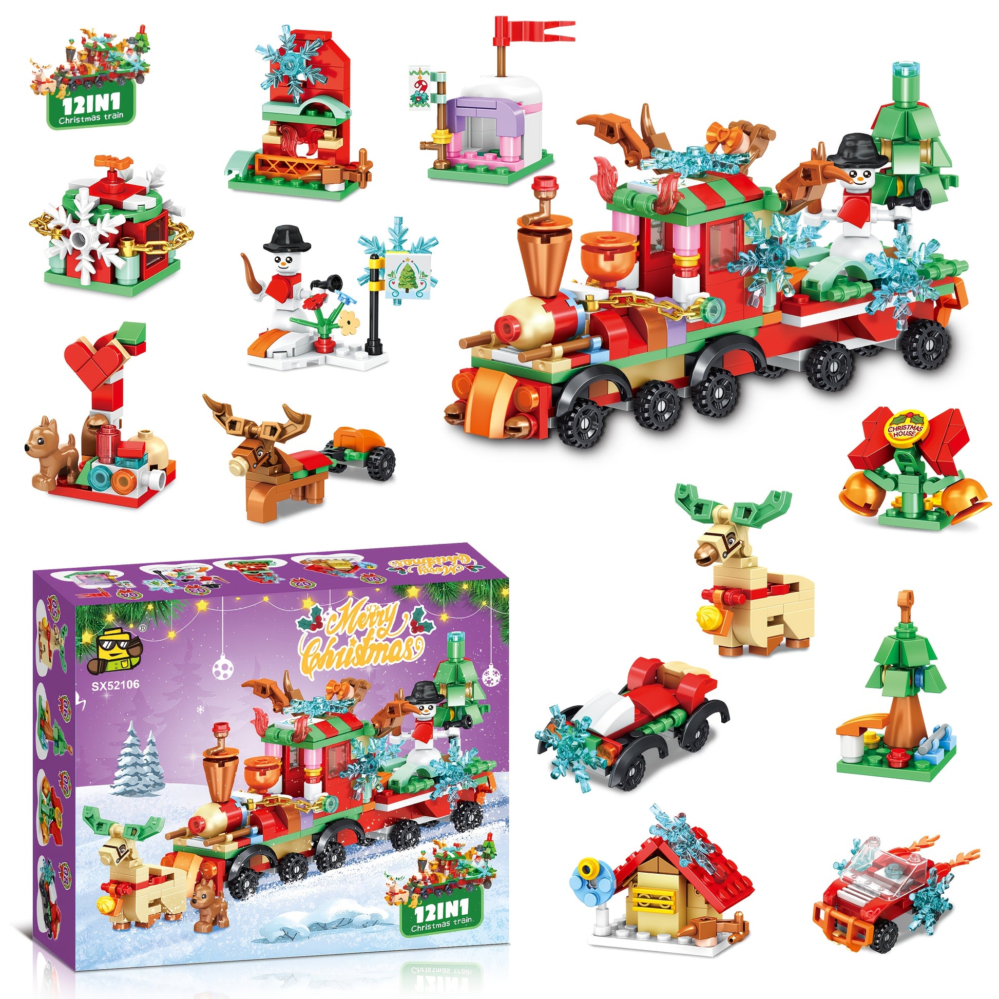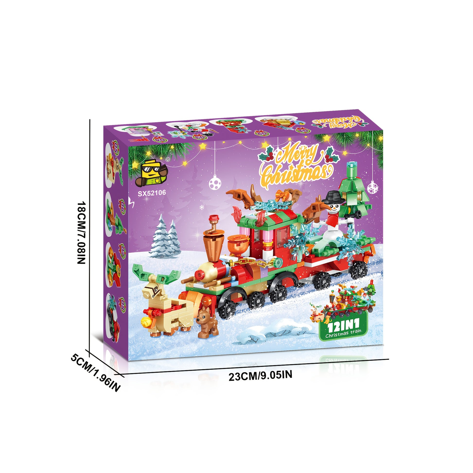 Karácsonyi Építőjáték Adventi Naptár Gyerekeknek 12 egymásba illeszthető vonatkocsival és figurákkal